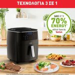 Η τέλεια ισορροπία για έλεγχο της θερμοκρασίας και της ροής του θερμού αέρα εξασφαλίζει τραγανό, χρυσαφένιο αποτέλεσμα με προσθήκη ελάχιστου ή καθόλου λαδιού