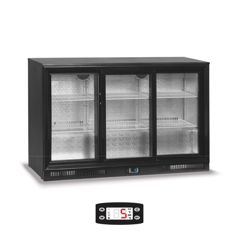 Βιτρίνα συντήρησης τριπλή - Back Bar με συρόμενες πόρτες , βεβιασμένης ψύξης & χωρητικότητας 300 lt , Tefcold Δανίας.