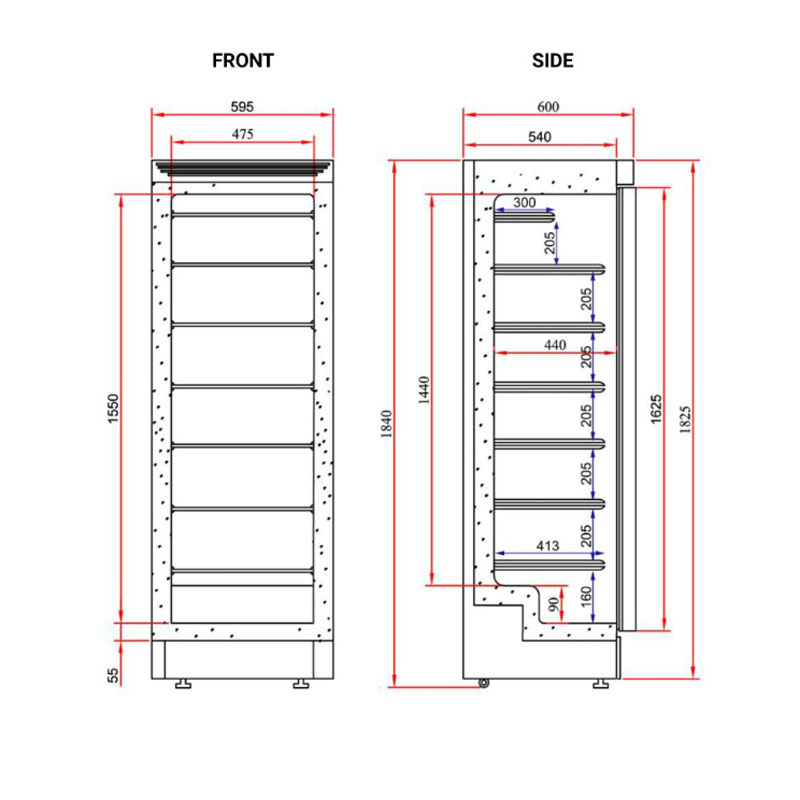 Εξωτερικές διαστάσεις 595x640x1840(h)mm