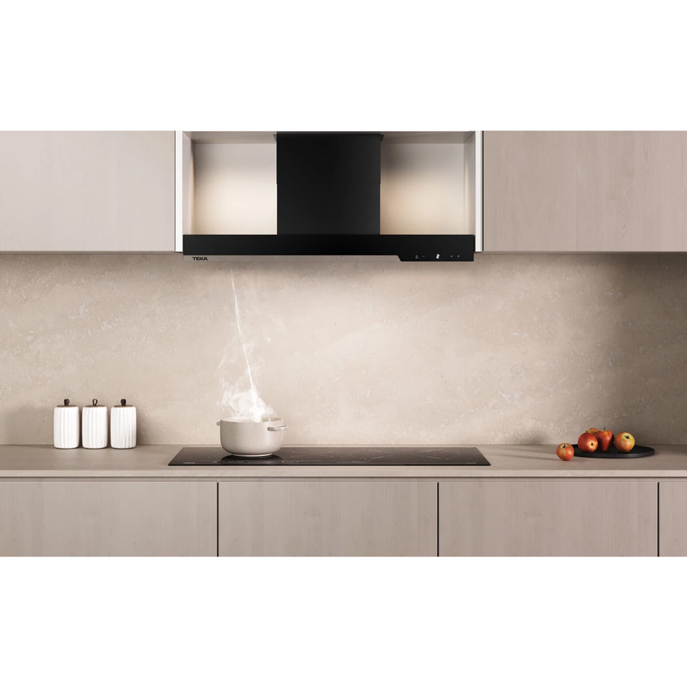 Πλήρως εντοιχιζόμενος απορροφητήρας εύκολος στην εγκατάσταση και με χώρο για αποθήκευση, 90 cm