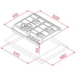 Κρυστάλλινο πλατώ γκαζιού με 9 βαθμίδες ρύθμισης της φλόγας (ExactFlame) στα 60 cm