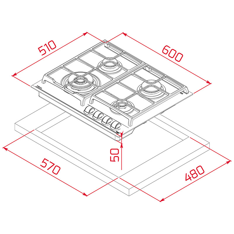 Μαντεμένιες σχάρες με καμπύλη σχεδιασμένες για να «γλιστρά» κάθε σκεύος από την μία εστία στην άλλη με πλήρη ευκολία. Ανεξαρτησία σε κάθε περιοχή μαγειρέματος.