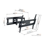 Hole pattern (VESA): 100 mm x 100 mm, 100 mm x 200 mm, 200 mm x 100 mm, 200 mm x 200 mm, 200 mm x 300 mm, 300 mm x 200 mm, 300 mm x 300 mm, 400 mm x 200 mm, 400 mm x 300 mm, 400 mm x 400 mm, 600 mm x 200 mm, 600 mm x 300 mm, 600 mm x 400 mm
