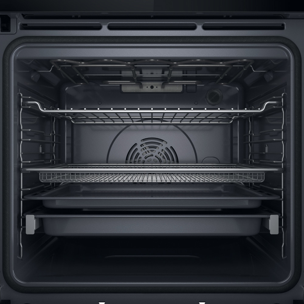 Αργό κλείσιμο. Χάρη στους μεντεσέδες αργού κλεισίματος, η πόρτα του φούρνου κλείνει εύκολα, με απαλή και αθόρυβη κίνηση.