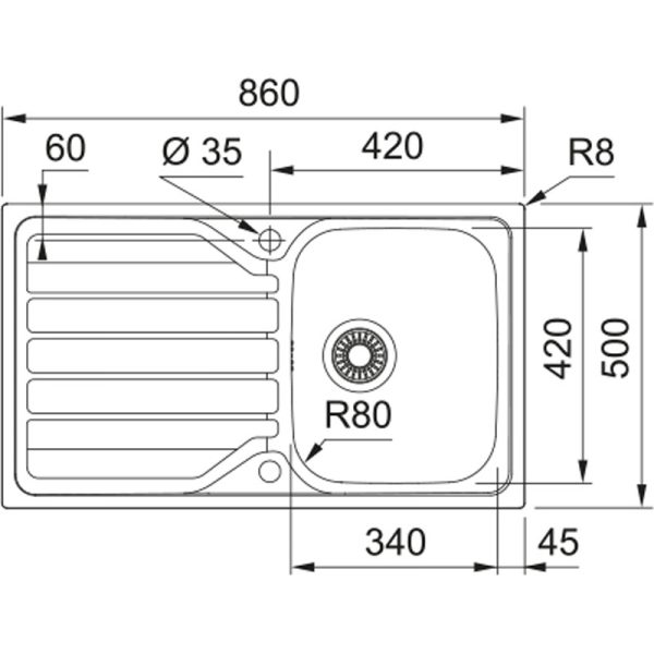 FRANKE FLN 611-78/50 (101.0713.864) ΝΕΡΟΧΥΤΗΣ ΙΝΟΧ ΓΙΑ ΝΤΟΥΛΑΠΙ 45CM ΕΝΘΕΤΗ ΤΟΠΟΘΕΤΗΣΗ