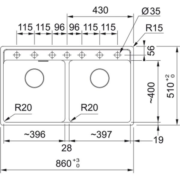 FRANKE MARIS MRG 620-40-40 TL COFFEE (114.0663.171) ΝΕΡΟΧΥΤΗΣ ΕΝΘΕΤΟΣ ΓΡΑΝΙΤΕΝΙΟΣ 86x51cm ΜΕ 2 ΓΟΥΡΝΕΣ ΜΗΚΟΣ ΝΤΟΥΛΑΠΙΟΥ 90cm