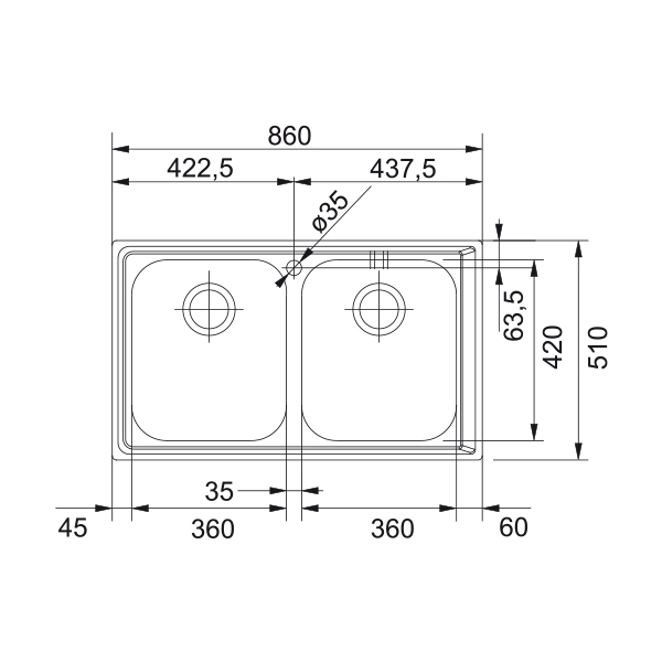 FRANKE BELL BCX 610-81 (101.0517.505) INOX ΝΕΡΟΧΥΤΗΣ ΕΝΘΕΡΟΣ 810x510mm