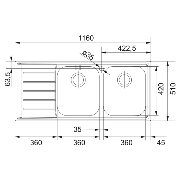 FRANKE NEX 621 (101.0191.486) ΝΕΡΟΧΥΤΗΣ ΕΝΘΕΤΟΣ ΜΕ ΑΡΙΣΤΕΡΗ ΠΟΔΙΑ 116x51cm ΙΝΟΧ ΜΗΚΟΣ ΝΤΟΥΛΑΠΙΟΥ 80cm