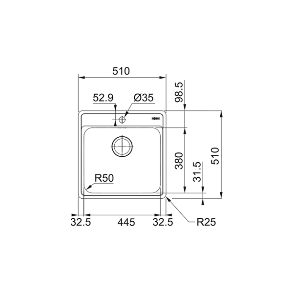 FRANKE BELL BCX 610-51 (101.0618.540) INOX ΝΕΡΟΧΥΤΗΣ ΕΝΘΕΡΟΣ 510x510mm