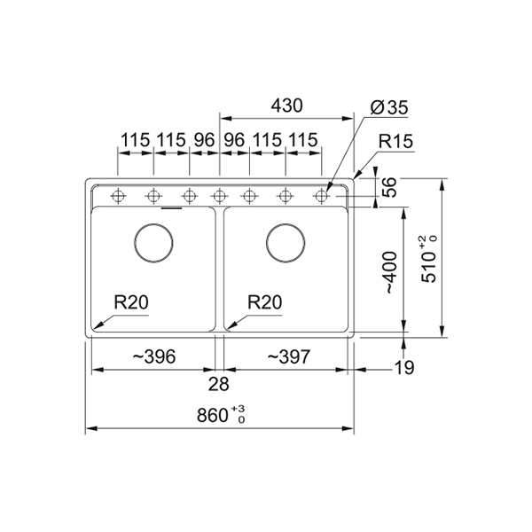 FRANKE MARIS BOWL MRG 620-40-40 TL (114.0663.170) ΝΕΡΟΧΥΤΗΣ ΓΡΑΝΙΤΕΝΙΟΣ ΜΕ 2 ΓΟΥΡΝΕΣ ΛΕΥΚΟ ΧΡΩΜΑ ΜΗΚΟΣ ΝΤΟΥΛΑΠΙΟΥ 90cm